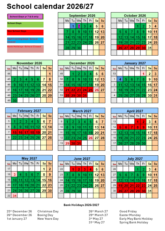 Return for year 7s to the Tollfield Campus on Wednesday 3rd September.
