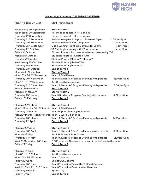 Return for year 7s to the Tollfield Campus on Wednesday 3rd September.