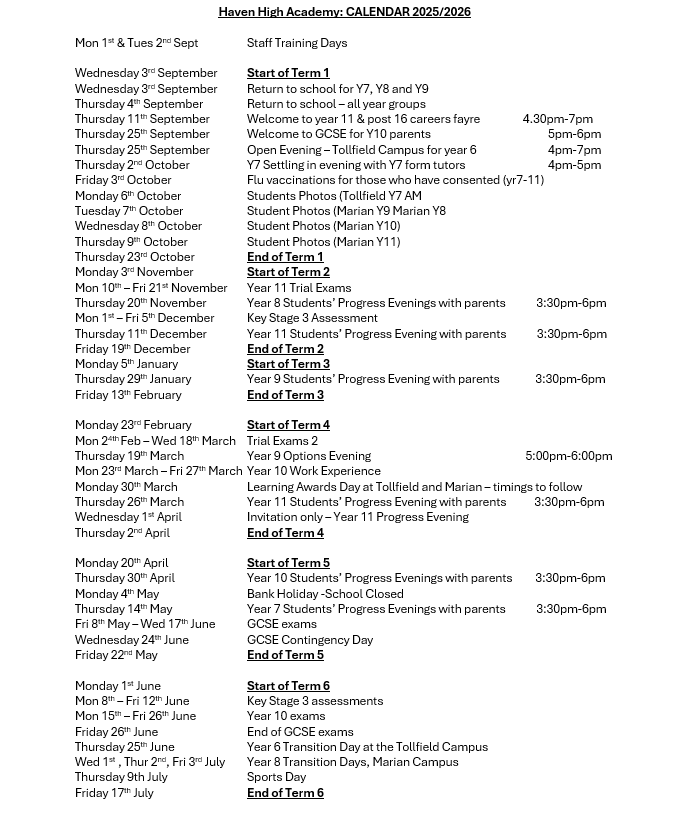 Return for year 7s to the Tollfield Campus on Wednesday 3rd September.